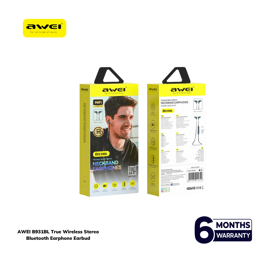 For added convenience, the built-in microphone and on-neckband controls allow users to manage calls, adjust volume, and control music without touching their phone. Overall, the Awei B931BL is a practical and stylish audio solution for sports lovers and everyday users looking for performance, comfort, and reliability at the best price in BD.