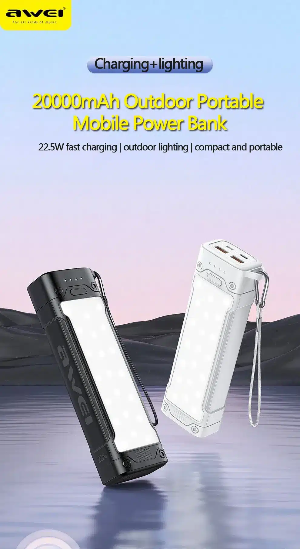 Awei P175K 20000mAh Portable Outdoor Power Bank With 25 lighting Lamps