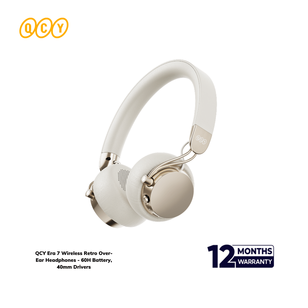 Step back in time without compromising on performance. The QCY Era 7 Wireless Retro Over-Ear Headphones pay homage to the golden age of audio with a stunning vintage-inspired design, while packing cutting-edge technology for today’s discerning listener. Featuring custom 40mm titanium-coated drivers for rich, detailed sound, a self-developed anti-leak system that blocks over 95% of sound leakage, and immersive 360° spatial audio, these headphones deliver an exceptional listening experience. With 60 hours of playback, plush comfort for all-day wear, and four elegant color options, they’re the perfect blend of classic aesthetics and modern innovation. Top Tech Zone guarantees 100% authentic products backed by an official warranty.