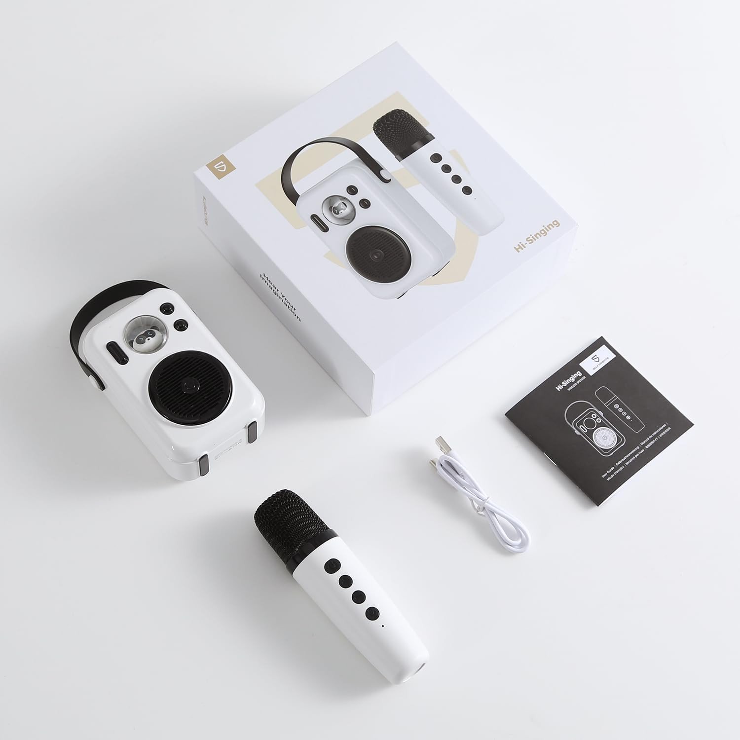 Bring the joy of music anywhere with the Soundpeats Hi-Singing Karaoke Speaker with Mic. This mini speaker is perfect for kids as well as adults and turns any moment into a fun sing-along experience. Kids can enjoy four magical voice effects while adults will love the clear powerful sound. It has a long-lasting built-in rechargeable battery that keeps the music going for hours. The speaker and microphone charge quickly using the TYPE-C port so you can start singing without delay. Its lightweight and portable design makes it easy to carry to friends' gatherings or family events. The SoundPEATS Hi-Singing Karaoke Speaker is simple to use and delivers high-quality sound for endless entertainment.