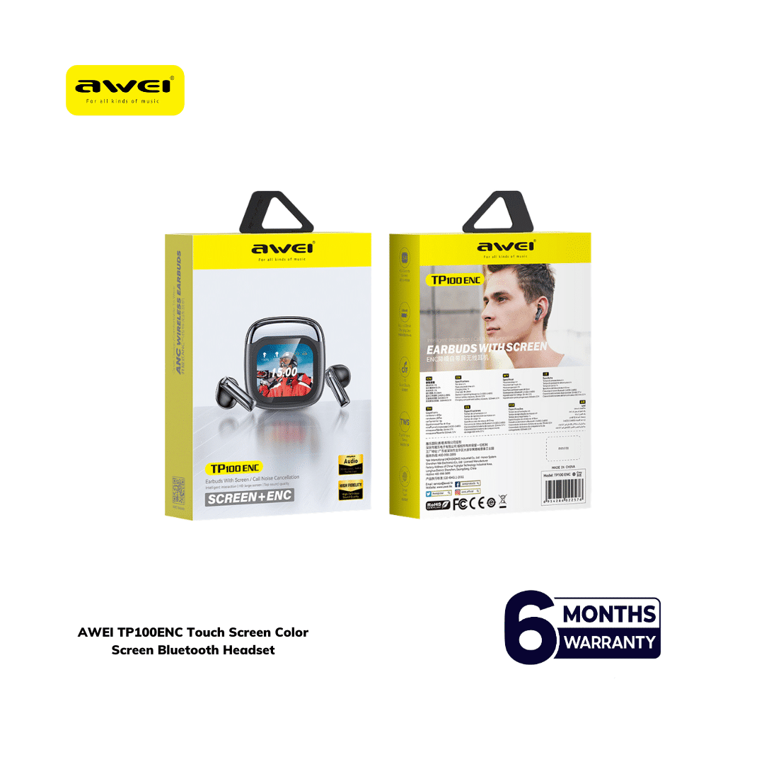 Imagine a pair of earbuds that keep up with your every move and deliver crystal clear sound all day long. The Awei TP100 ENC Touch Screen TWS Earbuds are designed for anyone who loves music and wants true wireless freedom. With Bluetooth 5.4, you can connect quickly and enjoy stable signals for all your devices. The ENC dual microphones block outside noise so every call feels clear and professional. Dynamic drivers bring your favorite songs to life with rich and balanced sound. Each earbud plays up to 6 hours and the 500 mAh charging case extends your listening up to 20 hours.