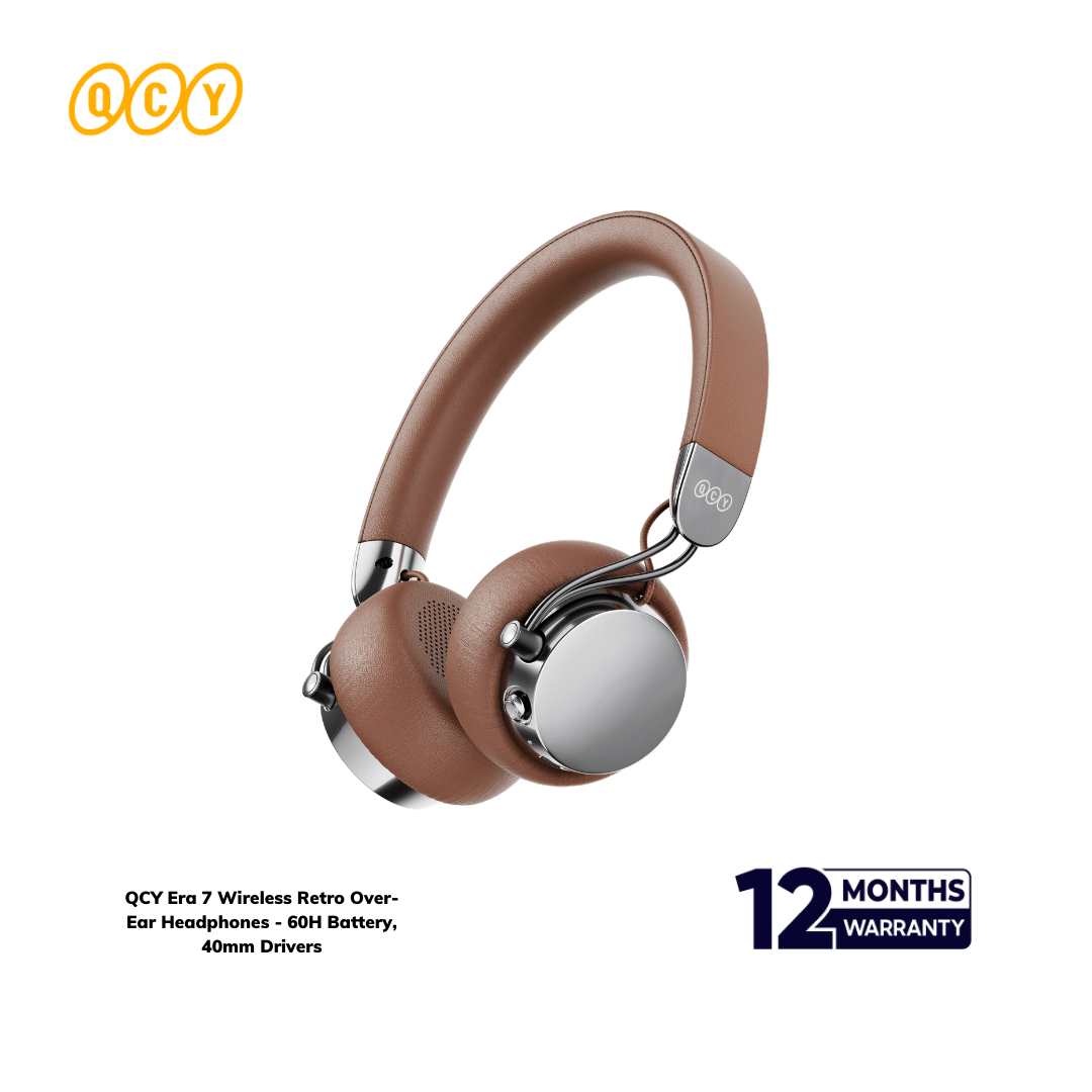 Step back in time without compromising on performance. The QCY Era 7 Wireless Retro Over-Ear Headphones pay homage to the golden age of audio with a stunning vintage-inspired design, while packing cutting-edge technology for today’s discerning listener. Featuring custom 40mm titanium-coated drivers for rich, detailed sound, a self-developed anti-leak system that blocks over 95% of sound leakage, and immersive 360° spatial audio, these headphones deliver an exceptional listening experience. With 60 hours of playback, plush comfort for all-day wear, and four elegant color options, they’re the perfect blend of classic aesthetics and modern innovation. Top Tech Zone guarantees 100% authentic products backed by an official warranty.